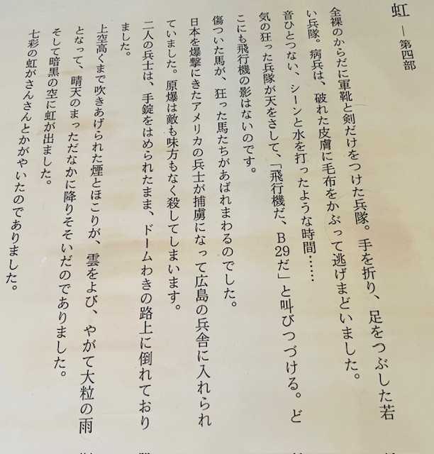 「日本を爆撃にきたアメリカの兵士が捕虜になって広島の兵舎に入れられていました。原爆は敵も味方もなく殺してしまいます。