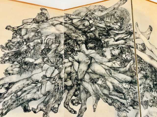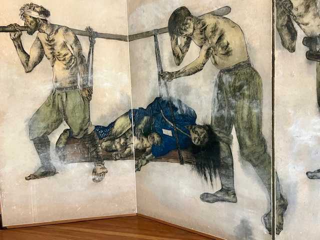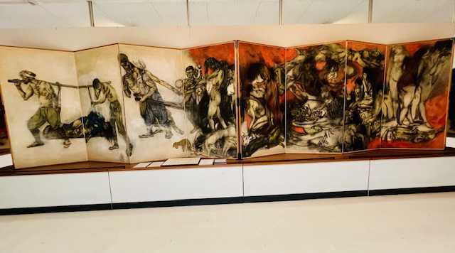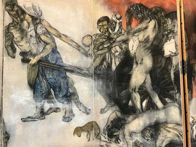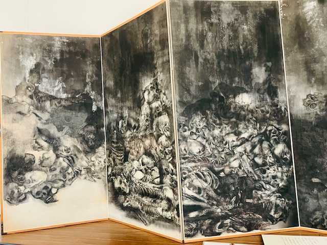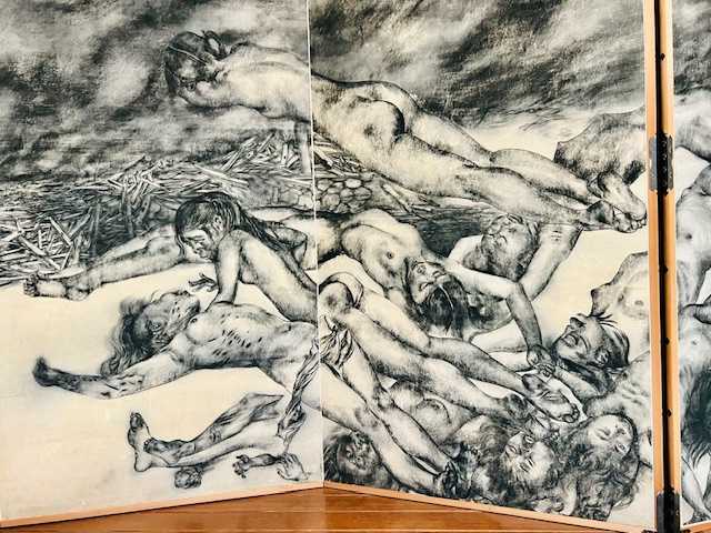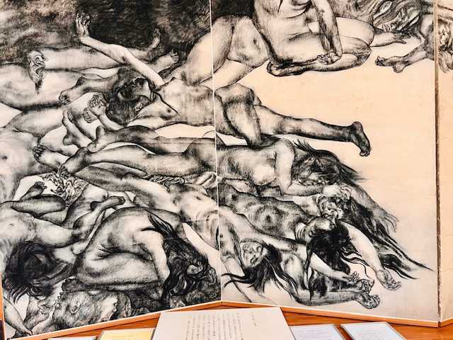 全裸のからだに軍靴と剣だけをつけた兵隊。手を折り、足をつぶした若い兵隊。病兵は、破れた皮膚に毛布をかぶって逃げまどいました。
