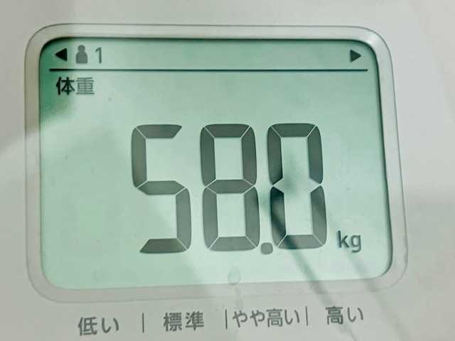 体重は、夕食後・入浴前58kg。2日前から0.1kg減った。