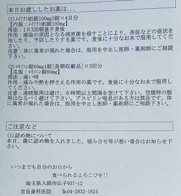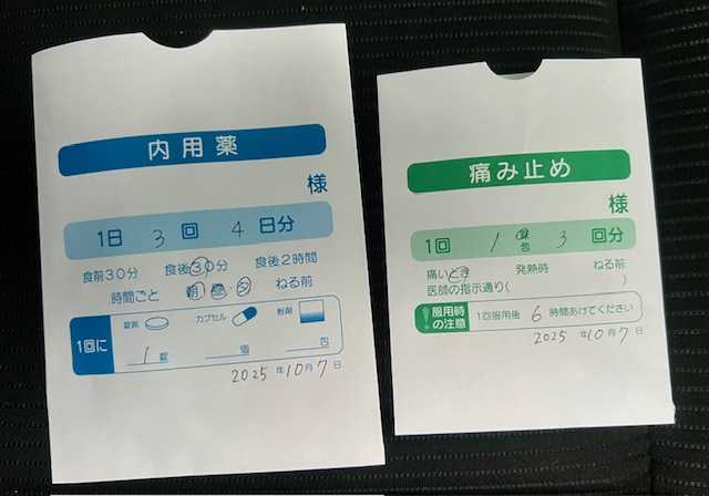 少し腫れてるそうなので、また抗生物質をもらいました。忘れずに飲み切らないといけないけどね。
