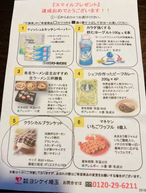 帰宅したら、ヨシケイから、スマイルプレゼントの申込用紙が届いてました。