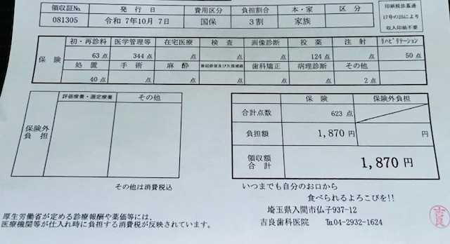 2025年09月26日XML 歯医者に行きました。歯科衛生士にスケーリングなどしてもらった。右下の奥歯が痛いので、レントゲンを撮り、歯医者にも診てもらいました。 歯周病もあるのですが、最近体調が悪く、免疫が低下してると、痛みが出てくることもあるそう。