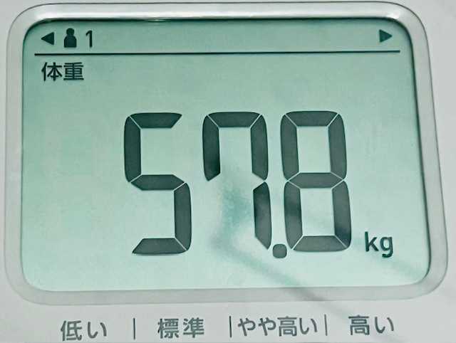 入浴後、57.8kg。入浴前から0.2kg減った。