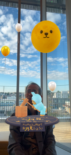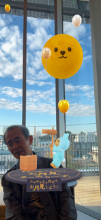 夫の顔の前で、兎が餅つき。偶然ですが、夫は兎年ですw