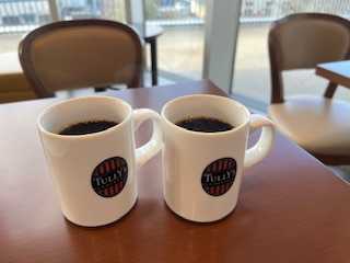 本日のコーヒーSを2杯注文。2人で1杯でもいいのだけど、そうもいかないよね。