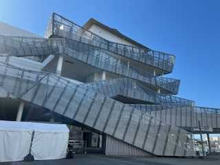 隈研吾には珍しく?木材を使用してない。細かい木材使用だと、朽ちて問題になってるから、