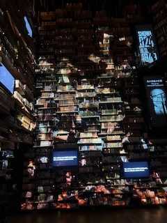 KADOKAWAの出版物のほか、角川源義、山本健吉、竹内理三、外間守善の個人文庫など約2万冊が配架されている。「本と遊び、本と交わる」がコンセプトのプロジェクションマッピングも上映され、本の内容が表紙の外に飛び出してくるような音と映像の体験が味わえる。