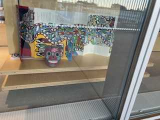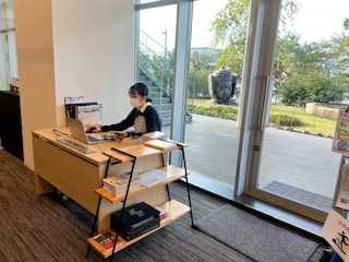 司書さんの後ろに見える、首だけの像は、なんだろう?