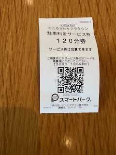 駐車料金サービス券120分券。合算できると書いてあったのに、今書いてて気づいた・・・