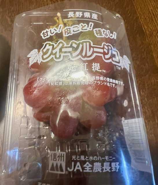 (紅いシャインマスカット)。シャインマスカットと巨峰の中間の感じで美味しい。