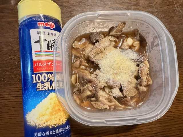 風味が無いので、コクを出すために、パルメザンチーズも入れました。