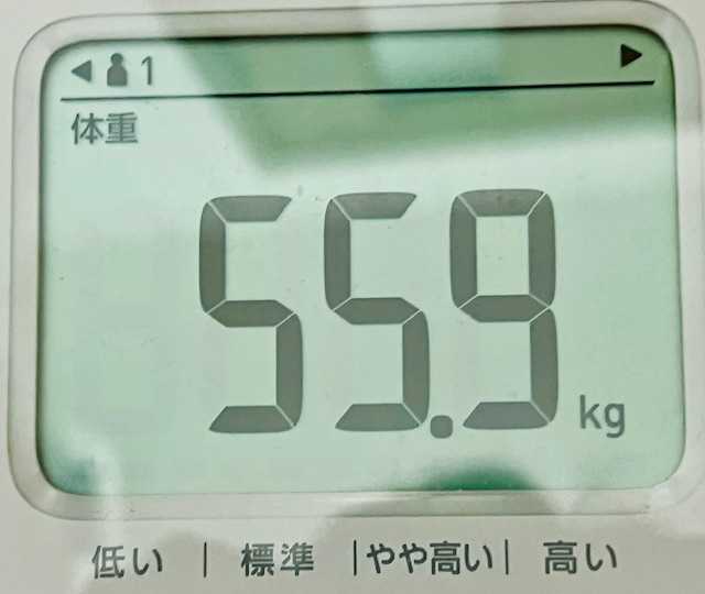 体重は、夕食後・入浴前55.9kg。2日前から0.5kg増えた。