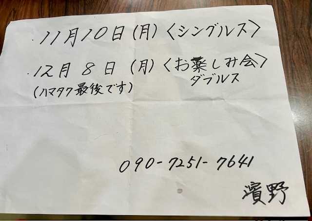 横上・横下・ショートサーブも、打たれてしまう。「サーブ出したら、すぐに後に下がって」とFさんに言われた。お互いに、とも思うが。右側から左側に移動して打とうとしたら、Fさんにぶつかってしまった。動き方がまだお互い上手くいかない。今日も体調不良で申し訳ないが、Fさんもなかなか決まらず、調子が悪いみたい。