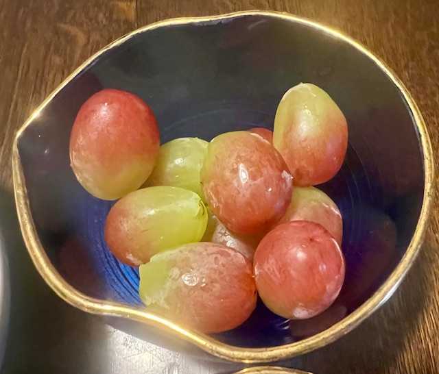 今日も、食欲が無く、この葡萄・クィーンルージュと、鮭を半分くらいと半熟卵を半分食べただけで、