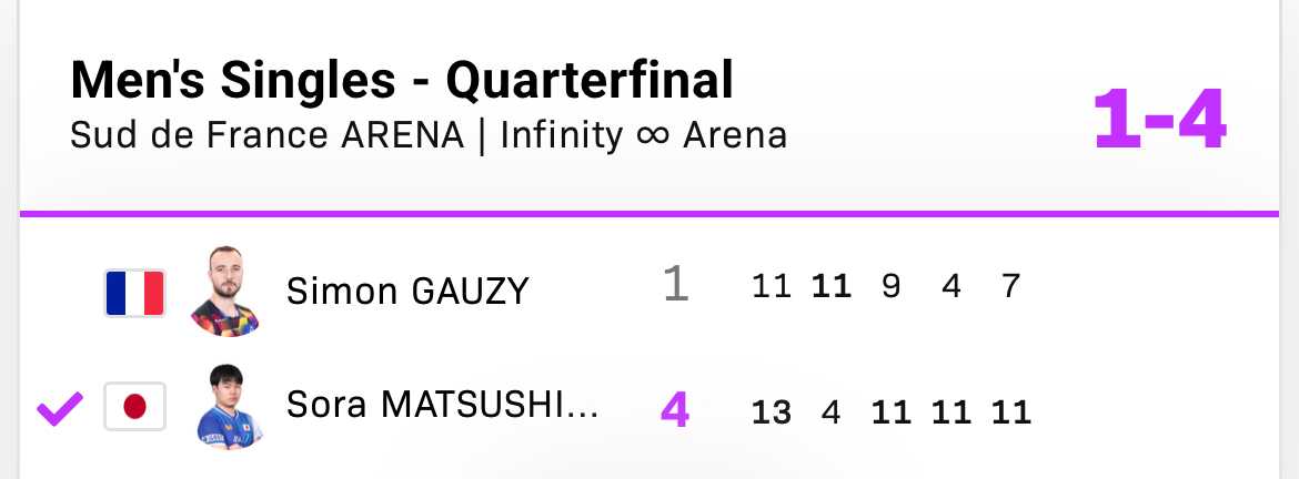 | 23:15 | T1( U-NEXT ) | 男子S-準々決勝 | 松島輝空WR15 3-1 シモン・ゴジ(フランス)WR17 Fルブを破ったゴジに勝った!引き合いも負けないし、ロビングの処理も上手い!Fルブも固唾を飲んでみてたな。Fルブ相手でも今の勢いなら勝てるかも。次は 張禹珍🇰🇷この調子で優勝して! ![]() ![]() ![]() ![]() ![]() ![]() ![]() |