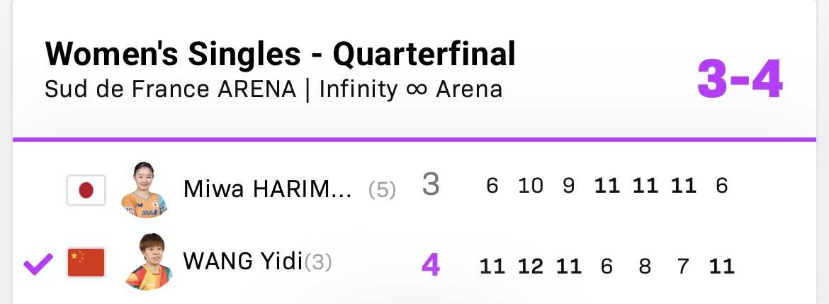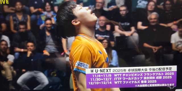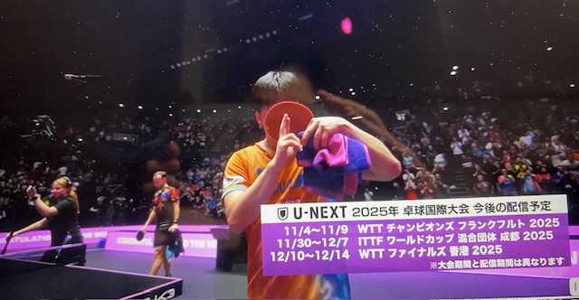 | 2(日)4:00 | T1( U-NEXT ) | 女子S-準々決勝 | 張本美和WR7 3-4 王艺迪(中国)WR5![]() |