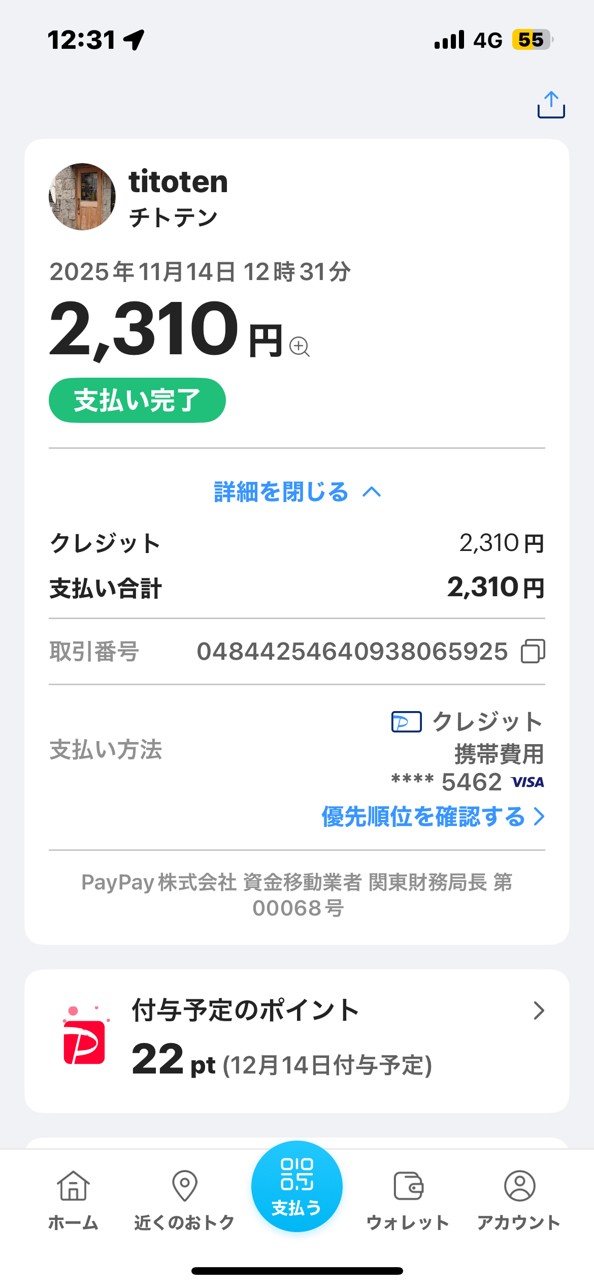 と思ったら、PayPayのクレジットカード払い?になってしまった。よくわからないw