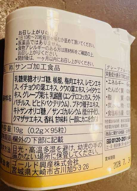 よく見たら、噛むか舐めて頂いてください、と書いてあったのに、薬みたいに水で飲んでしまったw