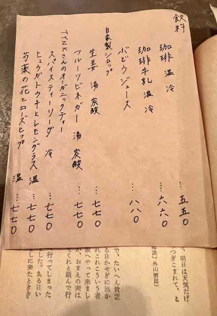 なんと、ここにメニューが挟まっていた!栞みたいですね。
