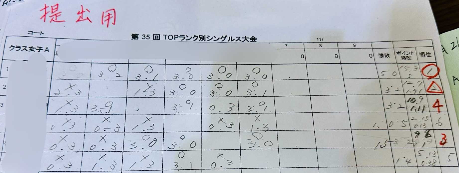Hさんから、TOPランク別シングルス大会の実況報告をいただき、