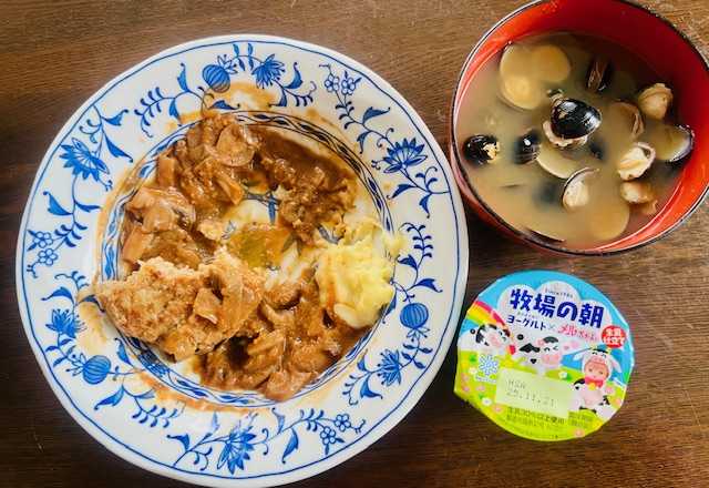 今日の昼食。朝食の残り。元は夕食の残りですがw