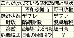 保険を見直せば、 「月に1万円の節約」 も可能です! にほんブログ村 野田が日本をぶっ壊す!“娘の身売り”再来か政府・民主党は27日、野田佳彦首相(54)や前原誠司政調会長(49)らによる三役会議で、東日本大震災の復興に向けた総額9・2兆円の臨時増税案を決定した。震災ショックと超円高、長引くデフレ、欧州財政危機と米国の景気悪化懸念など深刻な経済環境にもかかわらず、増税一直線の野田政権。「この状況は戦前の昭和恐慌当時と酷似している」との声も出てきた。当時の政権は景気悪化や大量失業を招き、「歴史的な経済失政」と糾弾された。野田首相が歴史に学ばなければ、日本は「増税恐慌」に陥る。政府・民主党は27日、復興増税案を決定。▽所得税を2013年1月から10年間、一律4%上乗せ▽法人税は12年4月から3年間減税を凍結▽たばこ税は12年10月から国税10年間と地方税5年間、1本あたり計2円引き上げ▽個人住民税均等割(現行一律年4000円)は増税時期を1年先送りし、 14年6月から5年間、年500円上乗せする-ということになった。 そして、その後には消費税増税も控える。いずれも「復興」を大義としているが、皮肉なことにこの復興増税は、復興を妨げる最大の要因になるという。三菱UFJリサーチ&コンサルティングの片岡剛士主任研究員はこう疑問を呈す。「震災からの景気回復は想定より弱く、来年度の経済成長率は復興需要があっても実質2%程度と予想しているが、増税とのセットなら1%台、復興需要がなければ0%台に伸び悩む。欧州財政危機など世界経済のリスク要因がより深刻化すれば、さらに成長率は低下するだろう。増税しないほうが痛みが小さいし、より成長できるのに、なぜわざわざ増税するのか」元内閣参事官で嘉悦大の高橋洋一教授も「このまま増税が強行されれば、日本経済は沈没する」と警告する。高橋氏によると、現状の経済環境や野田政権の政策路線は1929年以降の世界恐慌、そして日本の昭和恐慌と共通点が多いという。当時は「ライオン宰相」と呼ばれ人気だった浜口雄幸内閣で、井上準之助蔵相が緊縮財政政策を実施した。一方で1930年には為替相場を安定させようと、金の輸出解禁を断行、金本位制に復帰した。ところが禁輸前のレート(旧平価)で解禁した結果、急激な円高を招いた。「野田政権もデフレで円高にもかかわらず、増税による緊縮財政路線をとっている。また、恐慌当時の米国やドイツは緊縮財政路線で、現在の欧米諸国の財政再建路線とよく似ている」と高橋氏は解説する。昭和恐慌では成長率は落ち込み、約10%のデフレに陥った。中小企業の倒産ラッシュや大量の失業が発生、困窮した農村では娘の身売りも相次いだ。『震災恐慌』の著者で、雇用問題に詳しい上武大の田中秀臣教授は「昭和恐慌時の失業率は大ざっぱな数字では20%近いともいわれ、東京帝国大卒の学生も就職できない状況だった」という。そのころに比べると、現在はまだマシな気がするが、見かけの数字だけでは判断できない。「戦前は雇用の流動性があったので、失業率が急激に高くなっても景気が良くなれば短期間で改善しやすかった。しかし現在は、じわじわと長期的な停滞が続いている状況で、1%のデフレでも影響は深刻。こんなときに増税するのは、風邪をひき続けている人に寒空の外に出ろというようなもので、まともな判断ではない」と田中氏は語る。世界恐慌は1929年10月のニューヨーク株の暴落がきっかけとなったが、今回はギリシャが発火点となる。「ギリシャが1年以内にデフォルト(債務不履行)になるのは確実で、ギリシャの国債と民間の債権を保有する欧米金融機関は損失を被る。債務は計60兆円とリーマン・ショックと同程度の規模で、株安や失業を招くだろう」(前出の高橋氏)昭和恐慌では、1931年に蔵相に就任した高橋是清が日銀による国債引き受けなどを実施して短期間でデフレから脱却した。「実は日銀の国債引き受けは毎年行われており、今年もまだ18兆円の未使用枠がある」(高橋氏)というのに、なぜか野田政権や日銀はまったくやる気がない。日銀の国債引き受けは「ハイパーインフレを招く禁じ手」との批判もあるが、前出の片岡氏は「日銀が無制限にお金を刷り続けるか、終戦直後のように供給力が失われている場合はハイパーインフレの可能性もあるが、いずれも現状では考えられない」と明言する。 前出の高橋氏はあらためて警鐘を鳴らす。「ギリシャ問題が深刻化するのは予測できること。さらに日本は震災ショックも抱えている。本来ならば財政政策と金融政策をフル稼働させてデフレ脱却や景気回復を目指すべきなのに、増税するなんてもってのほかだ。復興増税が本格化する2013年は、ギリシャ発の債務危機で世界の景気がどん底の時期にぶち当たる恐れもある。歴史的な経済失政の再来となってしまうだろう」 野田政権は歴史に学ぶことができるのか、それとも後世に汚名を残してしまうのか…。【送料無料】超円高で震災日本は3年後に復活する