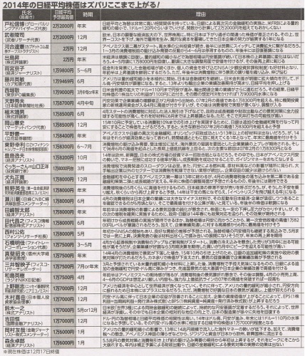 [先物OP市場ウォッチ]*08:01JST トルコ中銀はサプライズ利上げ、市場の警戒感は一気に後退:見通し28日の225先物は前日比60円高の15000円と反発で取引を終了。足元の急落に対する反動が優勢となったが、米アップルの時間外取引での下落などがマイナスとなり小幅な反発に留まった。米国株式相場は上昇。ダウ平均は90.68ドル高の15928.56、ナスダックは14.35ポイント高の4097.96で取引を終了した。主要企業に好決算が相次いだことで終日堅調推移となった。朝方発表された12月耐久財受注は予想に反して落ち込んだものの、その後発表された1月消費者信頼感指数や11月ケースシラー住宅価格指数などが予想を上回ったことが好感された。 円建てCME先物の清算値は前日の日中大証比140円高の15140円。為替市場では、ドル・円は103円30銭台、ユーロ・円は141円10銭台と円安に推移(8時00分時点)。朝方、トルコ中銀が臨時会合において翌日物貸し出し金利を7.75%から12.0%に引上げた。市場予想は10.0%だったことから、市場はポジティブサプライズと捉えリスク回避の円買いの巻き戻しが進んでいる。新興国通貨急落に伴う市場の混乱が回避されるとの見通しから、本日の225先物は買い優勢の展開となろう。24日に空いたマド(15090円-15270円)埋めがまずは意識される。米国では、FOMCの結果が発表されるが100億ドルのテーパリングが市場コンセンサスとなっており、さほど見極め姿勢は強まらないとの見方。本日の上値メドは15300円、下値メドは15100円とする。 VIXなど世界の恐怖指数と言われる指数は軒並み低下しており、先週発生した新興国通貨急落への警戒感は沈静化へ。中国の理財商品デフォルトの可能性もほぼ無くなったとのことから、市場のリスク要因はひとまず無くなったと言えよう。ただ、TOPIX先物の手口ではゴールドマン・サックスが3営業日連続で売り筆頭となっていることから、同社の売りが止まり地合いが一気に好転するかを注目。大きく外れる年初の株価&経済予想、なんのため?昨年は3000円も乖離、その意味とは さまざまなテレビ番組や雑誌などでもお馴染みの購買/調達コンサルタント・坂口孝則。いま、大手中小問わず企業から引く手あまたのコスト削減のプロが、アイドル、牛丼から最新の企業動向まで、硬軟問わずあの「儲けのカラクリ」を暴露! そこにはある共通点が見えてくる!?2014年も、1月がはや終わろうとしている。同時に年初の経済予想も出そろい、今年はアベノミクスへの期待からか楽観的予想が目立った。ところでこの1月は、筆者にとってライフワークとしている情報収集の時期でもある。というのも、私は年初に出た識者たちの年間経済予想を保存しておき、その的中率を検証している。そして外れたのを知ると、「ざまあ見ろ」と思う。いや、冗談である。「経済予想って難しいな」と思う。最もわかりやすいのは株価予想だろう。多くの識者が日経平均を予想する。新聞が載せた彼らの「預言」は、どうだったのだろうか。昨年を振り返ってみよう。結果からいうと、日経平均株価は高値が12月30日の1万6320円22銭であり、安値が1月9日の1万398円61銭だった。これに対する識者の予想を再掲する。なお、本稿は個人攻撃が趣旨ではないため、あえて個人名を省く。(1)昨年1月5日付毎日新聞より ・マネックス証券チーフストラテジスト:1万3500円~1万円 ・大和証券チーフエコノミスト:1万2500円~9500円 ・野村證券チーフエコノミスト:1万2000円~9000円 ・SMBC日興証券チーフ株式ストラテジスト:1万1500円~9000円 ・ニッセイ基礎研究所チーフエコノミスト:1万1000円~8500円(2)同日付朝日新聞より ・SMBC日興証券エコノミスト:1万1500円(12月) ・大和証券エコノミスト:1万2500円(12月)うむ、見事に外れたようだ。その他、毎日新聞、日経新聞、読売新聞はそれぞれ経営者アンケートを実施し、株価予想を載せている。(3)昨年1月4日付毎日新聞より ・94社の経営者の日経平均予想は、高値予想平均が1万732円44銭、同じく安値予想平均が8877円 ・高値予想の最高値はセブン&アイホールディングスの経営トップであったが、それでも1万3500円(4)昨年1月3日付日本経済新聞より ・経営者20人へのアンケートによる日経平均予想では、 高値予想平均は1万1825円、安値予想平均は9125円 ・高値予想の最高値はオリックス会長と大和証券グループ本社社長であったが、 それでも同じく1万3500円。また、達成時期についてオリックス会長は6月、大和社長は7月と予想。(5)昨年1月3日付読売新聞より ・経営者30人へのアンケートによる日経平均予想は、 高値予想は1万1000円前後が11人、安値予想は9000円前後(15人)と8500円前後(6人)。●年初の株価予想、ほとんど無意味なのになぜ行われる? 以上の中で昨年の最高予想は1万3500円であり、実際とは3000円もズレたことになる。ちなみにこれは新聞だけの特徴ではない。ネットメディアでも、さまざまな予想がなされていた。例えば、Yahoo!Japanの『教えて達人スペシャル!達人の2013年マーケットを大予想』( http://info.finance.yahoo.co.jp/kab