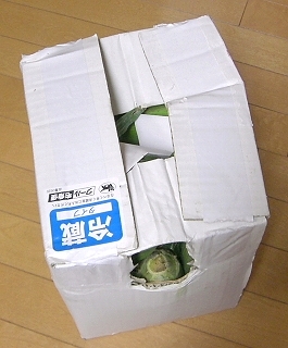 5月の終わりにクローズドオークションで落札してから待つこと2ヶ月やっと届きましたよ~ だけど予告なしにイキナリ届きましたたまたま家にいたから良かったけどさ~。発送後にメールするってメールに書いてあったのにな…届いた箱はこんな感じ多すぎて蓋が盛り上がっちゃってますよ~B品なので虫がいたと思われる部分が切り取られていたとこもあるけどどうせ自宅用だから問題なし早速、虫がいる事を覚悟しながら皮むき開始―葉の量がスゴくて数本、剥いただけでamoの手はシワシワに・・・結局、旦那様が殆ど剥いてくれました amoはヒゲ取り数は12~14本予定とあったけど16本も入ってましたよただし15cmくらいの小サイズから25cmくらいの大サイズと大きさが様々でしたが半分くらいは20cm程の大きさでした結局、覚悟していた虫を1匹も見ることが無くて逆に先端が切り取られてもいない「これのどこがB品なの」という物もありました。少し生で食べてみた。食べれなくないけど生っぽい感じは否めません。だから全部、2.3分ほど茹でました。茹であがった物がこちらどうです~良い色でしょ~味はスゴク甘いっす~ 食べた後に手がベタベタになるくらい皮を剥いてるだけで潰れちゃうくらい粒が柔らかいので綺麗にポロポロと粒は取れないけど、丸かじり大好きなamoには全く問題なしー 1日に届いてから毎日1本ずつ食べてます何せ2人で消化しなきゃいけないからね~でも全然、飽きないですよー旦那様が嫌がるので今年のモロコシはこれで終わり。来年は別の品種をポチってみたいな~。でもこれ気になる~5本なら良いかな・・・生でも食べれるフルーツコーン「サニーショコラ」5本黒姫高原から~朝もぎ直送♪そうそう、丁度ここの「しなのえちご屋」で6月に予約でポチってたアスパラガスも同時期に届きました。という事でダブルレポ。ポチったのはこちらどっちにしようか迷ったら・・・詰め合わせが如何ですか?紫アスパラ+グリーンアスパラ紫アスパラが食べてみたくて~グリーンも今まで鹿児島と北海道と食べ比べしたので今回は真中の長野です。そして届いたアスパラがこちら1本20cm以上もあるロングサイズです~太さはマチマチだったけど16本ずつ入ってました。スゴクお得感あるわ~ だってスーパーで売ってるロングサイズって3本で安くても198円くらいだし。紫なんて店頭で見た事ないし。早速、そのまま軽く炒めました。味は塩コショウだけ。う~ん シャキシャキで美味しい~ 水分ありますよ~紫アスパラはとても柔らかくて美味しい。かなり気に入ったーでも半分くらい友人にあげちゃったので天ぷらとかする程の数もなく、今回は炒めだけで終わっちゃったけど・・・また購入しようかと思ったけど、今回はこちらをポチりました 皆様のご希望にお応えして、ご家庭用の訳ありアスパラ再販です!正規品との混合での再登場です!【送料無料】ご家庭用、訳ありアスパラ1kg リニュ-アルして再登場!0804お得108月7日9時59分までポイント10倍だから・・・以前にも2回ほどポチってるお店だし。amoはかなりのアスパラ好きなんです~。今、時期だしね~ハマってます。北海道産ではこれを食べました 【送料無料】極太グリーンアスパラ1kg道産牧場バター付きこのバターあっさりしてて美味しかったよ~北海道、長野、鹿児島と食べ比べての感想北海道筋は根元部分にあり。生食は無理。全体的にガッチリしていて固めだけど水分あるので火を通した方が旨みが出る感じで美味しかったです。茹でると水分が多すぎる感じでamo的にはイマイチでした。風味(香り)は他よりも一番あります。そして色が濃い。食感はコリコリという感じ。長野筋は殆どなし。グリーンも紫も柔らかいので生食でもOK。生だと青臭さが多少ありますけど。水分豊富なので多分、炒めが一番美味しいと思う。紫のほうがが風味が良いです。食感はシャクシャク。鹿児島amoが食べたのは春物で筋はなかったです。夏は分からない。色は薄めだけど青臭さや渋みがないので食べやすいです。生食には、ちょっと固いかも。水分は他と比べると少なめなのかもしれないけれどそのせいか茹でて炒めても何にしても美味しいです。食感はシャキシャキ。春と夏では味とか違うみたいだし上記が全てという訳じゃないけれど参考になればと思って書きました。それから好みもあるからどこが良いとは言いません。長々としたレポにお付き合い頂きありがとうございました~