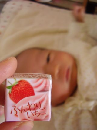 遅くなりましたが2月14日はもちろんバレンタイン私たち夫婦は付き合ってた頃(3年目?)から誕生日、クリスマスなどの行事に贈り物制度を廃止しました(´∀`;) ただ単に節約&欲しいものは自分で買えってだけの意味で。で、今年も何もせずにいたのですが、コンビニで美味しそうなチョコを発見した嫁は思わずカゴへ・・・名目上はだんな様用に(~ヘ~;)そこで、ふと思ったのが息子のこと。なーんにも分からない年齢ですが(当たり前)人生初のバレンタインは母の特権!?ということで、チョコあげました(〃∇〃)体に似合ったチロルチョコはい、どうぞ息子氏、いらねーよ!!!!!!そっぽを向いて布団蹴りまくりました・・・( ̄◇ ̄;)きっと食べれない物と判断したのでしょう。そうさ、母が数秒後に頂いちゃったわん注*本人のプライバシーに配慮して目は隠しました。上で見えてるよ!!<おまけ>あなたはこの記録超えられますか?超えたいですか??(~ヘ~;)2007.2.11 嫁のドーナツ記録 1日に7個☆(しかも内1つはD-POP)抹茶のオールドファッションは美味しいけど濃いですなぁこうして体重が戻ったにも関わらずまた増えゆく嫁のバディなのでした
