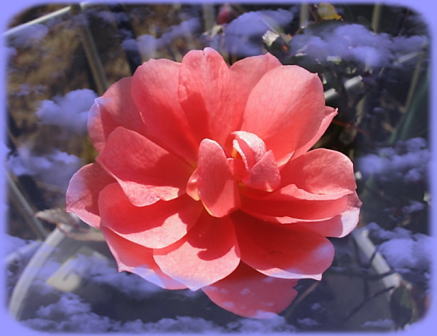 ミニバラのアンゼラリボン四季咲き性が強く去年の夏 我が家に来てからもう3回目の花ミニとはいえ1mくらいにはなりそうなのでやはり植え替えてあげないとかわいそうだね。。ほんとに リボンのように愛らしいバラ☆フレームをつけたら雪の庭に咲いているよう。
