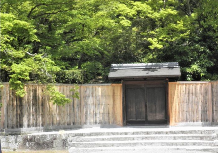 ↓上離宮の「御成門」は竹で編まれたものですが、簡素な中に品位を感じさせる門となっています
