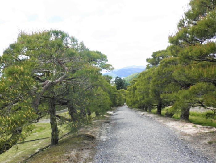 ↓上離宮へのぼってきました、昔は田んぼの畦道に過ぎなかった道は松並木が綺麗に植栽され「御馬車道」として両側の田・畑と共に離宮の十境の一つです