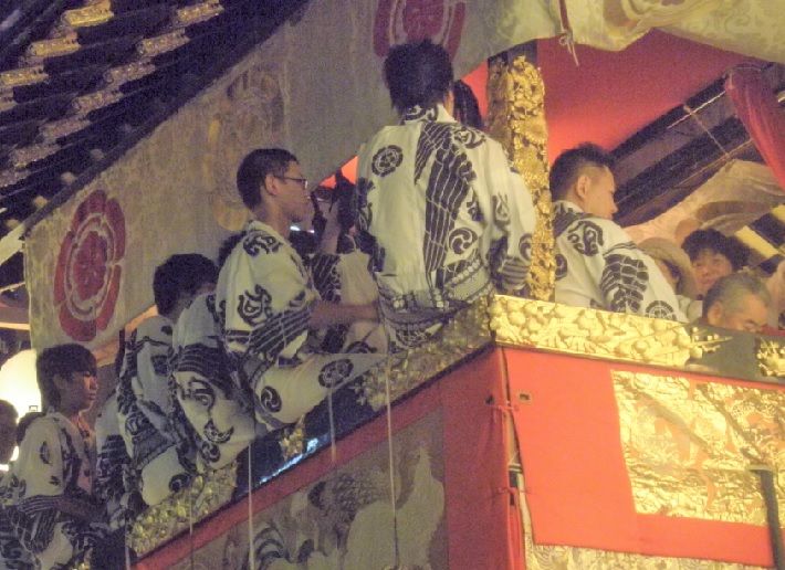 ↓鉾上には町内町衆から選ばれた囃子方奏者が登ります