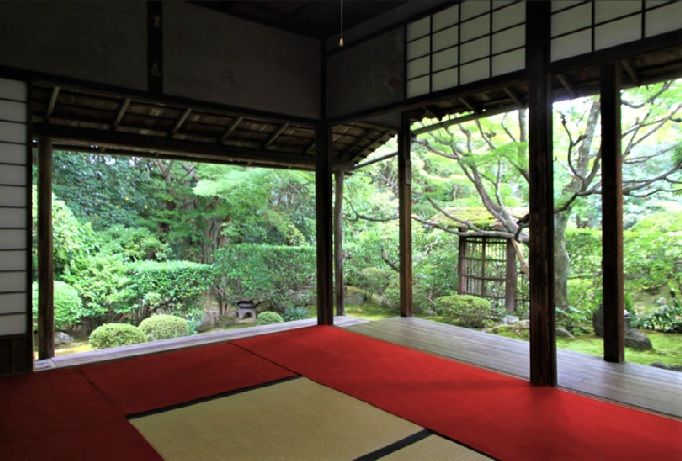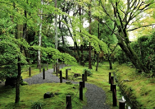 桂春院の庭は、方丈を中心に三方に四っの枯山水庭園が有り、秋は紅葉が映え 春から夏へは苔が美しく緑一色の庭となり、国の史跡・名勝に指定されています