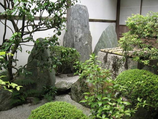 ↓方丈北の坪庭「清浄(ショウジョウ)の庭」西に井筒を配し紀州の巨岩・奇石が直立し枯れ滝が造られています