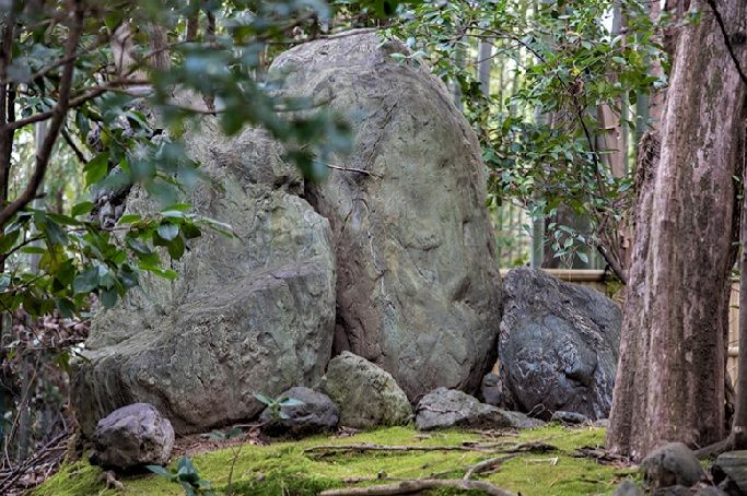 ↓置かれた巨石、三尊石を象っています