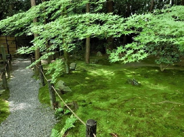 ↓苔庭に青々したもみじ降ります