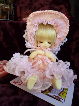 ドール写真を掲載しています。 お人形が苦手な方は気をつけてください。まいど~wなんと・・・今度のプライベートパーティに・・・持ち主が行くことになりました行けるかなぁ・・・どうしようなんて言ってたのですが、仕事も休みだし完全ではないですが、体調も落ち着いてるようなので気分転換に行くことを勧めました。誰を連れていくかと聞いてみると・・・持ち主 「パパイヤに新しいダブルのスーツ買ったでしょ あれ出して~ カッコいいから着せていくわ」ということで・・・パパイヤと小さいのを誰か連れていくかと~見かけたら声かけてやってくださいw今度こそ 天使ちゃんをゲットしてきてもらわなきゃwwおまけ我が家の小さなベイベーです(笑)可愛いのですが・・・小さすぎてお洋服に困ってます