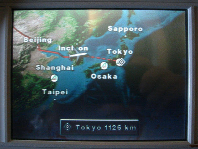 ミラノを飛び立ったアリタリア機が何時もとは異なり真横に地球を横切る形で飛んだ。普段は北に向かって弧を描いて飛ぶのだが、それとは違った。モニターに表示される航跡は弧を描いているように見えるのは、地図の表示の関係で実際には日本に向かって最短距離を飛んでいると思う。それに比べて本日は何時もよりは南に飛び。最後は北京とインチョン上空を経て鳥取辺りから日本に入った。樺太あたりから降りてくる何時ものコースと違うのでデジカメに記録、ただしこれは禁止事項。機内ではペースメーカーと補聴器を除く全ての電子機器が使用禁止と厳格だが、その割にはイタリア人は着陸と同時に携帯電話を使っていた。