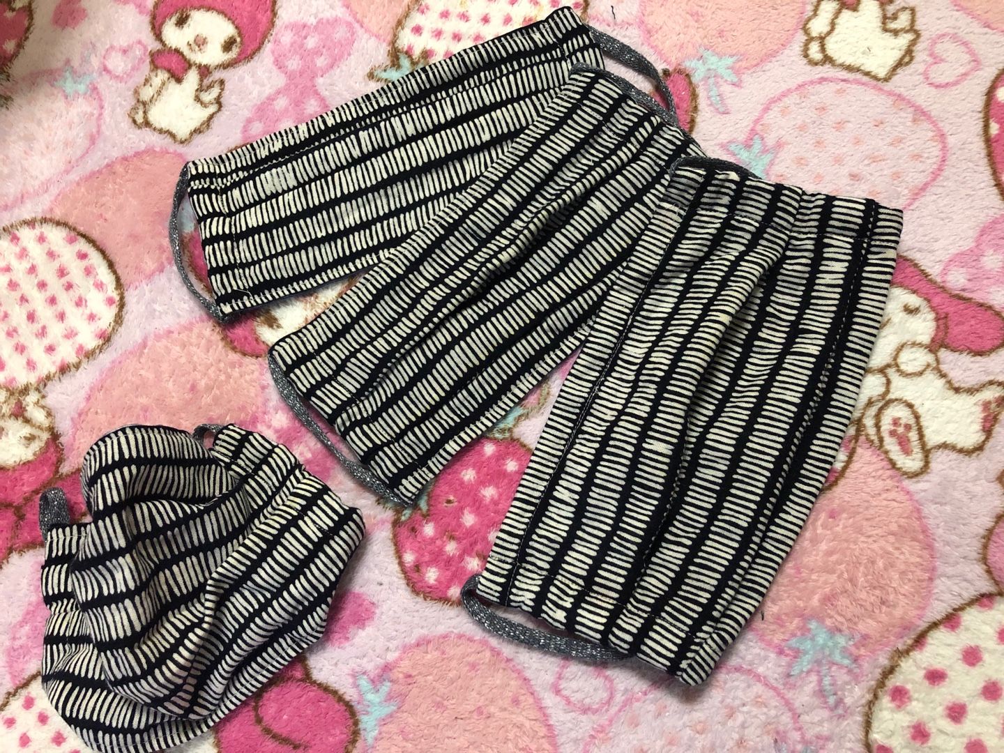 頼まれたので作った。表生地は濱文様か、かまわぬの畳柄の手ぬぐい。濃紺で渋めに裏は使わない手ぬぐい。間に4重ガーゼを入れて使用したらいいかと思う。ゴムの部分は、セリアのヤーン。