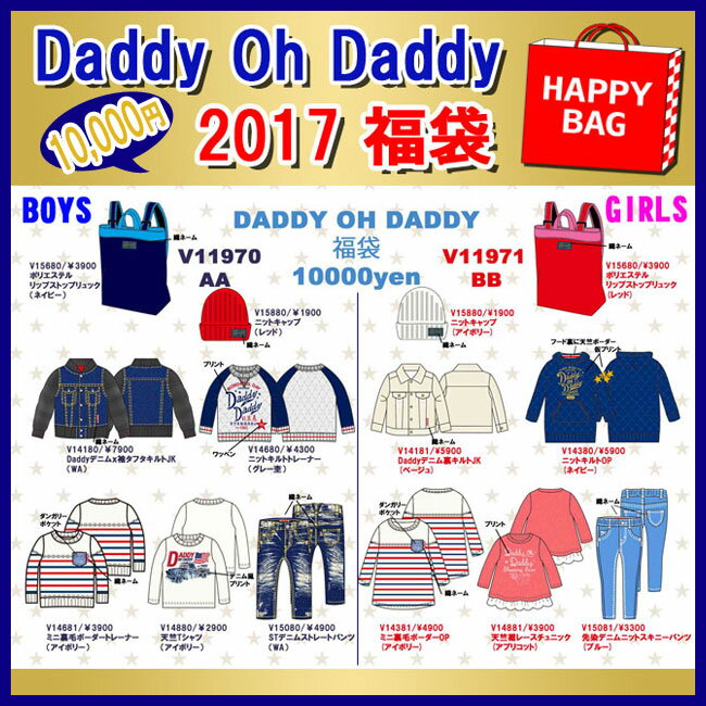 17'福袋【宅配便送料無料】Daddy Oh Dabby【ダディオダディ】★2017年新春福袋★男の子女の子【人気 子供服 福袋 キッズ ジュニア 女 男】V11970・V11971【コンビニ受取対応商品】