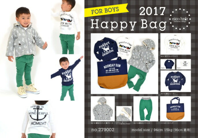 ≪送料無料⇒2017新春福袋nico hrat【ニコフラート】オリジナルトートバッグ入り福袋(男の子)ご予約開始!!【キッズ&ジュニア 子供服 男の子 福袋】