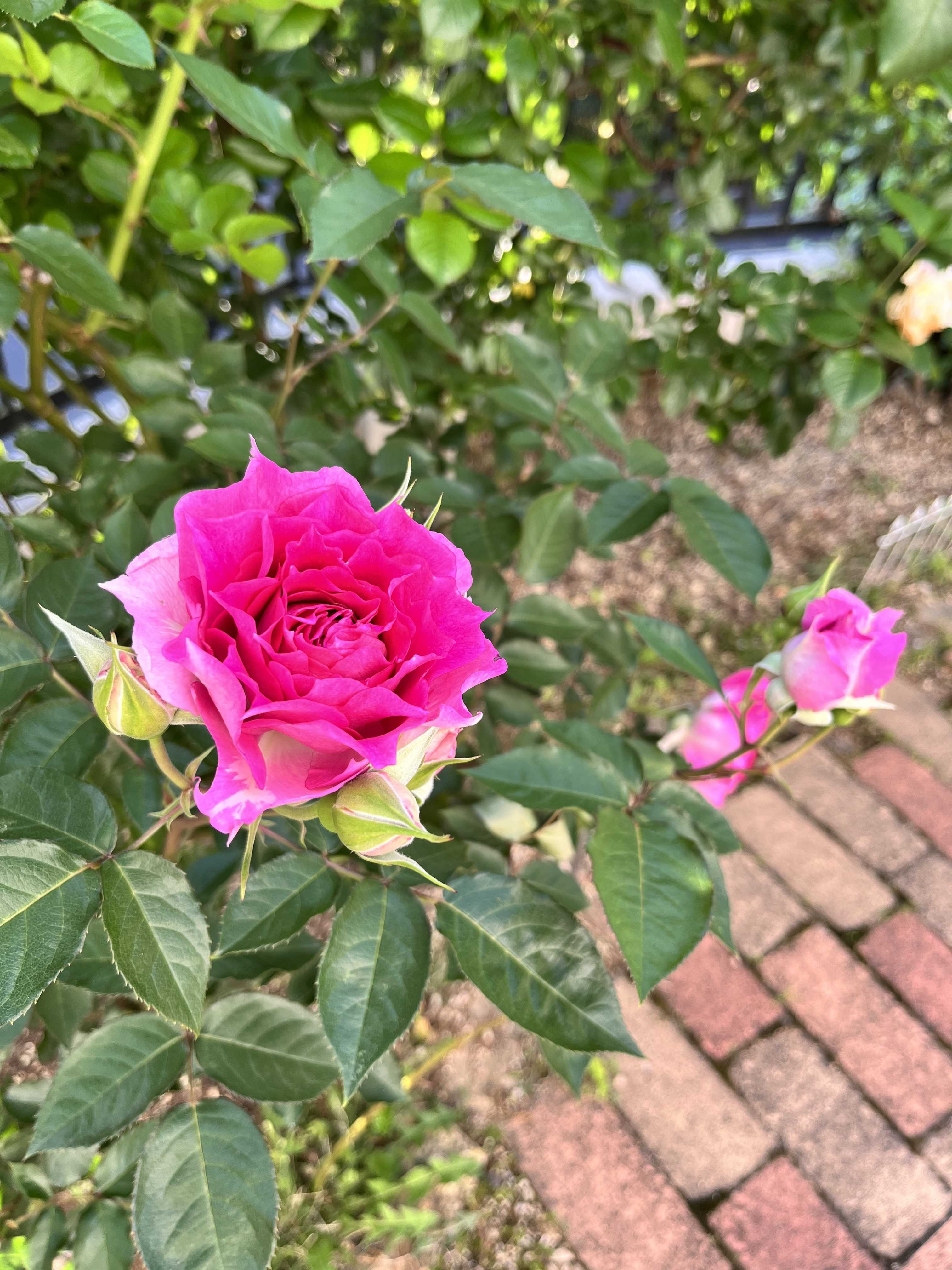 我が家には4種類のバラが植えられてます。今朝、綺麗に咲いてくれたのは、シェエラザードという、花びらの先が少しとがった感じの濃いピンクの薔薇。これ、香りがとーっても爽やかなんです💕レモンみたいな香りで、毎年鼻を近づけて思いっきり匂いをかぐのが、楽しみなんです☺️我が家に初めて迎え入れた思い入れのあるバラさん♪ちょっと元気がなかったんだけど、今年も咲いてくれてよかった!バラ好きさんに是非嗅いでいただきたいおすすめのバラです🌹【大苗】バラ苗 シェエラザード (Sh濃桃) 国産苗 6号鉢植え品【即納】[農林水産省 登録品種]《J-RO》
