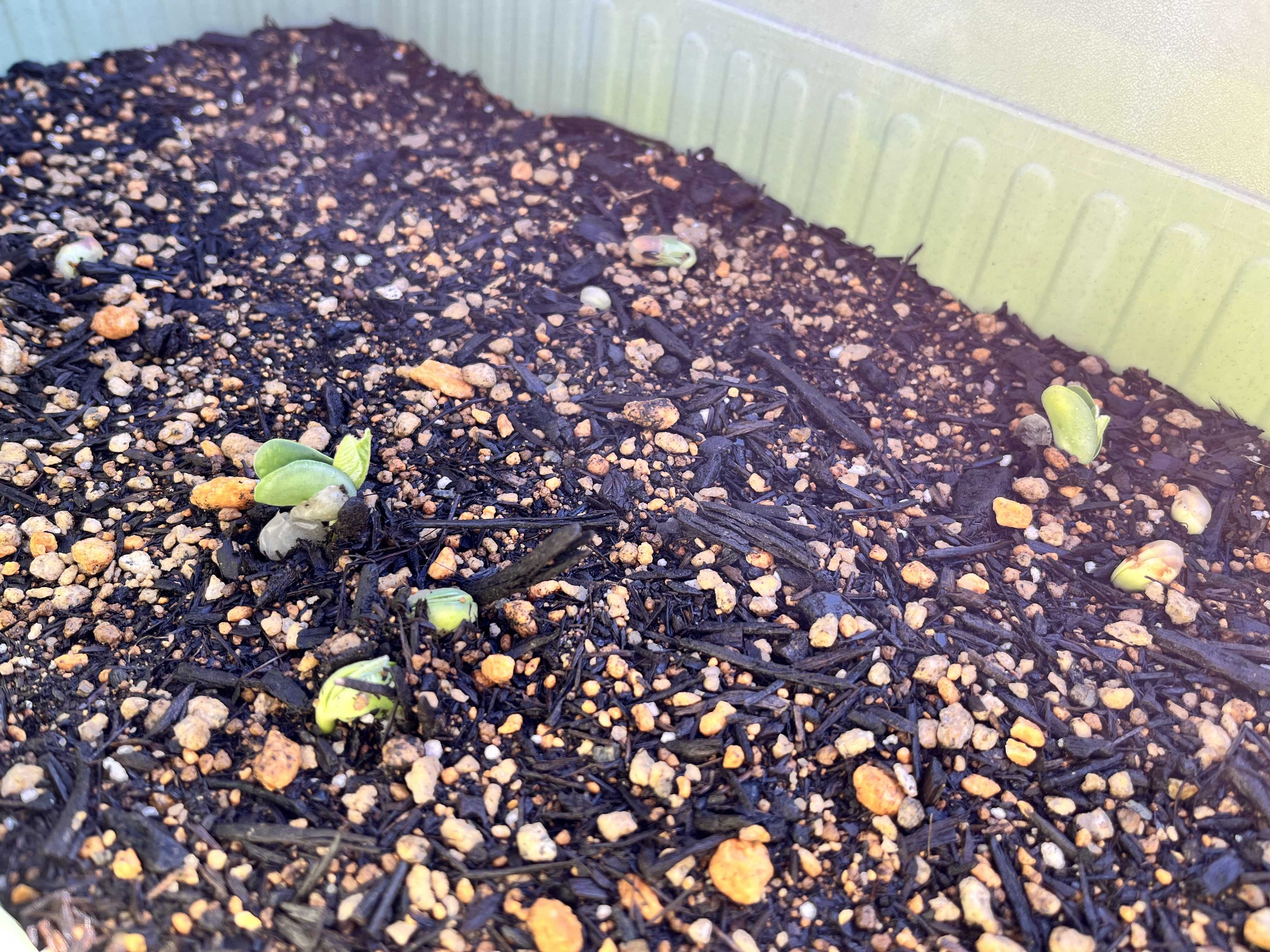 毎年我が家の小さな庭に、プランターで父が野菜の種を蒔いたり苗を植えてくれます。5月の連休に蒔いたいんげんと枝豆の芽が顔を出し始めました🌱最近は雨ザーザーだったため、上にネットを被せて雨よけをしました。今朝は久しぶりにいい天気☀️!ネットを外してあげて、たくさん日光を浴びてもらいます☺️ちゃんと育ってくれるといいな♪