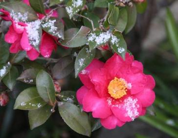 本日は あまり書き込むべき 我が家のニュースが なかったので 一昨日の雪の日の 少し雪をかぶった庭の山茶花の写真を貼り付けました軒先にあるので 積もったのはほんの少しだけです23日に紹介したヤツデの雪とは 大違いです 山茶花と寒椿の違いを見極めるのは 難しそうです