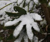 わが町 大阪 高槻市にも 只今 雪が降ってます未明から降り始めたようで 12月の大雪ほどでは ありませんがやむかと思えば また降ったり 重そうな雪が うっすらと地面を白くしています庭のヤツデの葉にも雪が積もり 手袋をしているように見えました