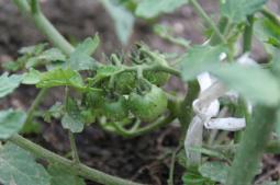 5日間旅に出ていた間に 畑の様子は様変わり 野菜たち みんな大きく成長していました我がハタケの夏野菜目玉商品 ミニトマト「アイコ」特徴ある実がついてくれていました 実があるのは 今のところ この房だけど 別に花が咲いている房もあります他の大玉 ミニにも順調に実がキュウリ 大きくなってきました 一番キュウリは おいしくないとか だけどなかなか取り去る勇気がありませんな 坊ちゃんカボチャ トウモロコシ 昨日の強風でかなり傾き 支柱で補強しました 午後にはタマネギ2種類 収穫するつもりです