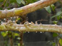 今朝は風もなく比較的暖かい庭には猫以外に鳥もよく飛んでくる年から年中常連のスズメ 今はよく熟した柿を満喫中 そのスズメを追っ払って ムクドリが何羽も この 黄色い模様をもつ鳥は何と言うのだろうか 後 ハトなども来るけど 一番愛らしいのは メジロ 訪問を待ってます