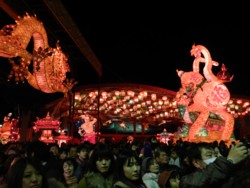昨日ご質問の 世界三大夜景 昔 香港・ナポリ・函館 今は新三大夜景 香港・モナコ・そして長崎 となったようです 昨年選定し直したとかさて ランタンフェスティバル中華街の旧小正月 春節祭が20年ほど前に長崎市全体のイベントになったらしい まぁ観光地の冬枯れ対策の一つですね 今年は2月10日から24日まで 2週間限定バスでホテル到着し 夕食を食べた後 またバスでフェスティバル会場近くまで送ってもらう バスは一時間ほど待機し 1時間で飽きた人はバスにて 乗らなかった人は 適宜タクシーにて ホテルまで タクシー料金は 事前に 最高1500円ぐらいと聞いていたけど 我々は1000円で送りつけてもらえた ラッキー! 中華街その他に舞台が設けられ 蛇踊りなんかが にぎやかに繰り広げられてます舞台に招きあげられた観光客 九州住民のみならず オーサカ 東京 はては北海道から遊びにきた人も 観光客誘致対策 バッチリ成功しているようです 重文 眼鏡橋のあたりは 他の紅色と違い 黄色の提灯で これも なかなか風情があります 川の中には鳥たちの姿も ちなみに昼の景色 というと なんか 桜の季節の桜公園の雰囲気 翌日午前中は自由行動 オプションもあったけど 全員 市内自由散策を選択グラバー園(昔はグラバー邸) 大浦天主堂 オランダ坂 出島跡 いずれも何十年振りか 懐かしい さて昼食 と バス待機所近くの ちゃんぽん・皿うどん発祥の店に 行ったら 満員でかなりお待たせとのこと そこで受付嬢の紹介で 近くの小さな店に行ったなら 本日お休み 別の店に行ったなら またまた改装のためお休みいつもいつも不幸な私達 近くの喫茶店でショウガ焼き定食で済ませる羽目にさぁ メインのハウステンボスへ出発です