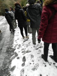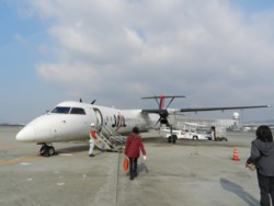 大阪(伊丹)空港から久々に体験するプロペラ機で 1時間半弱 抜けるような青空と雪の残る山を見ながら 無事空港着搭乗機は日本エアーコミューター D8型(注 プロペラ機)(大阪空港にて)昼食後 有名焼酎製造工場(テツママさんご推薦のとは別の)を見学している最中 添乗員さんから 「本日見学予定の紀元杉のあたり 一生懸命 除雪中けど間に合いそうもない 明日に延期 明日の予定の分を今日に前倒しします」明日テツママさんと涙の再会予定なのに と慌ててケータイで連絡 チョー忙しい人だけどなんとかやりくりしてもらい 本日最終の観光地で落ち合うことにだけど 紀元杉ツアー会社の 屋久島ツアー案内では 見出しが「バスを降りたら眼の前に紀元杉が!」とあるように超目玉観光地 我々と入れ替わりに帰るツアー客さん かわいそうに屋久島ツアーの象徴を見ることなく帰ることにこれがシーズンオフでの観光の怖いところです そういえば辺りを見渡すと 他社のツアーバスが見当たらない ガイドさんいわく 「この時期ツアーをやっているのは 蔵2-さんだけ ありがたいことです」まず向かったのが巨大ガジュマルが茂る 「中間ガジュマル」見学中 姿が見えなくなっていたでこちゃん 近所を散歩していたら 地元の方が 庭に実るポンカンをくれた とのこと 決して物欲しそうな顔をしていたわけではありません続いて 本来明日面会予定だった「大川の滝」好天で水量が少ないのがちょっと残念 けど青空に白い滝がよく似合ってます「ここに来たら 出発するので 連絡をチョーダイと」テツママさんに言われていたので メールを入れようとしたら なんと圏外 弱ったなと思っていたが どこかで圏内に入ったようで自動的に発信 無事連絡が取れました世界遺産指定地が 唯一海岸と接する「西部林道」をちょっと歩き いよいよテツママさんとご対面です